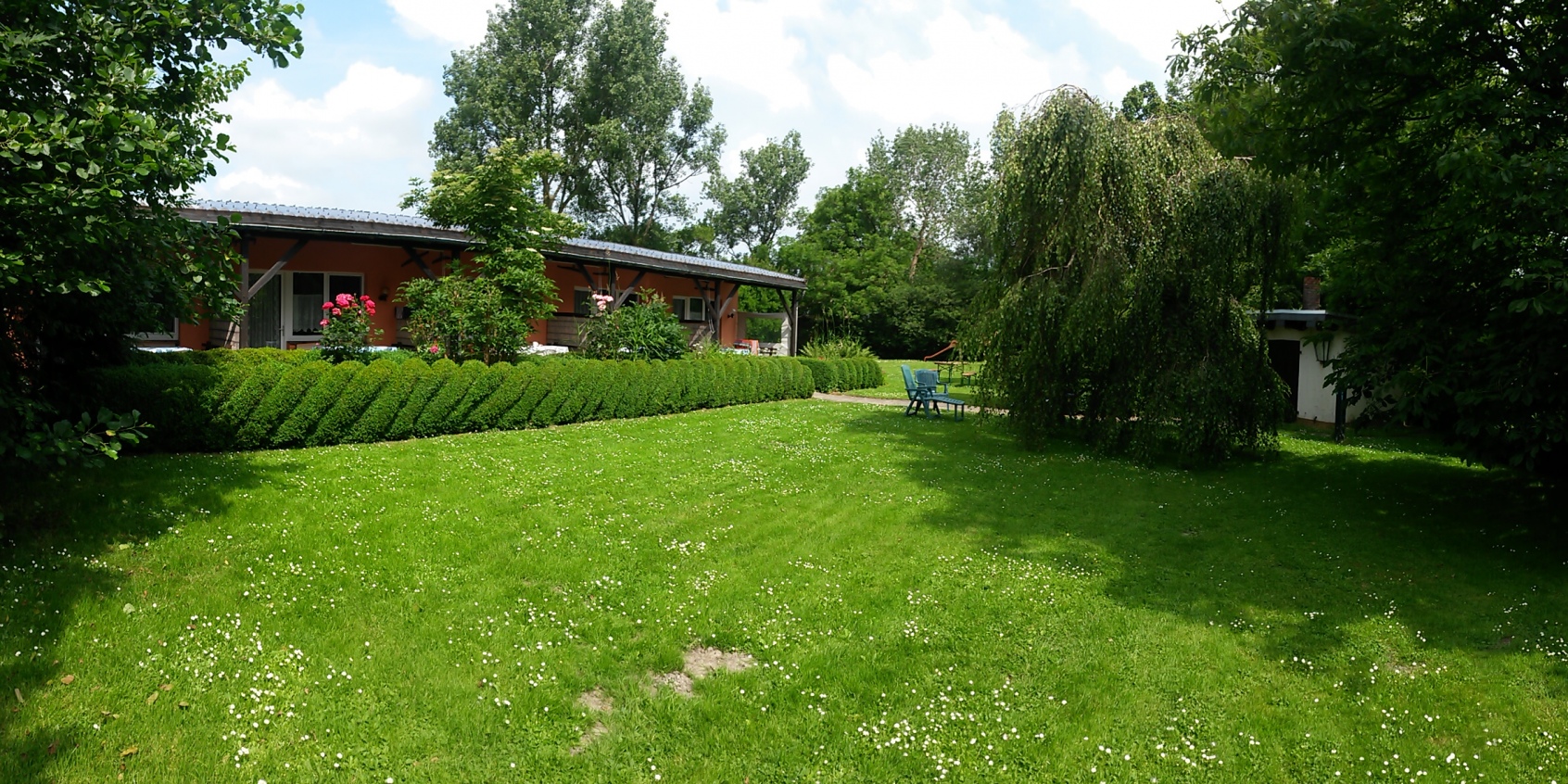 Appartement ist eine überdachte Terrasse und eine Liegewiese von